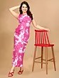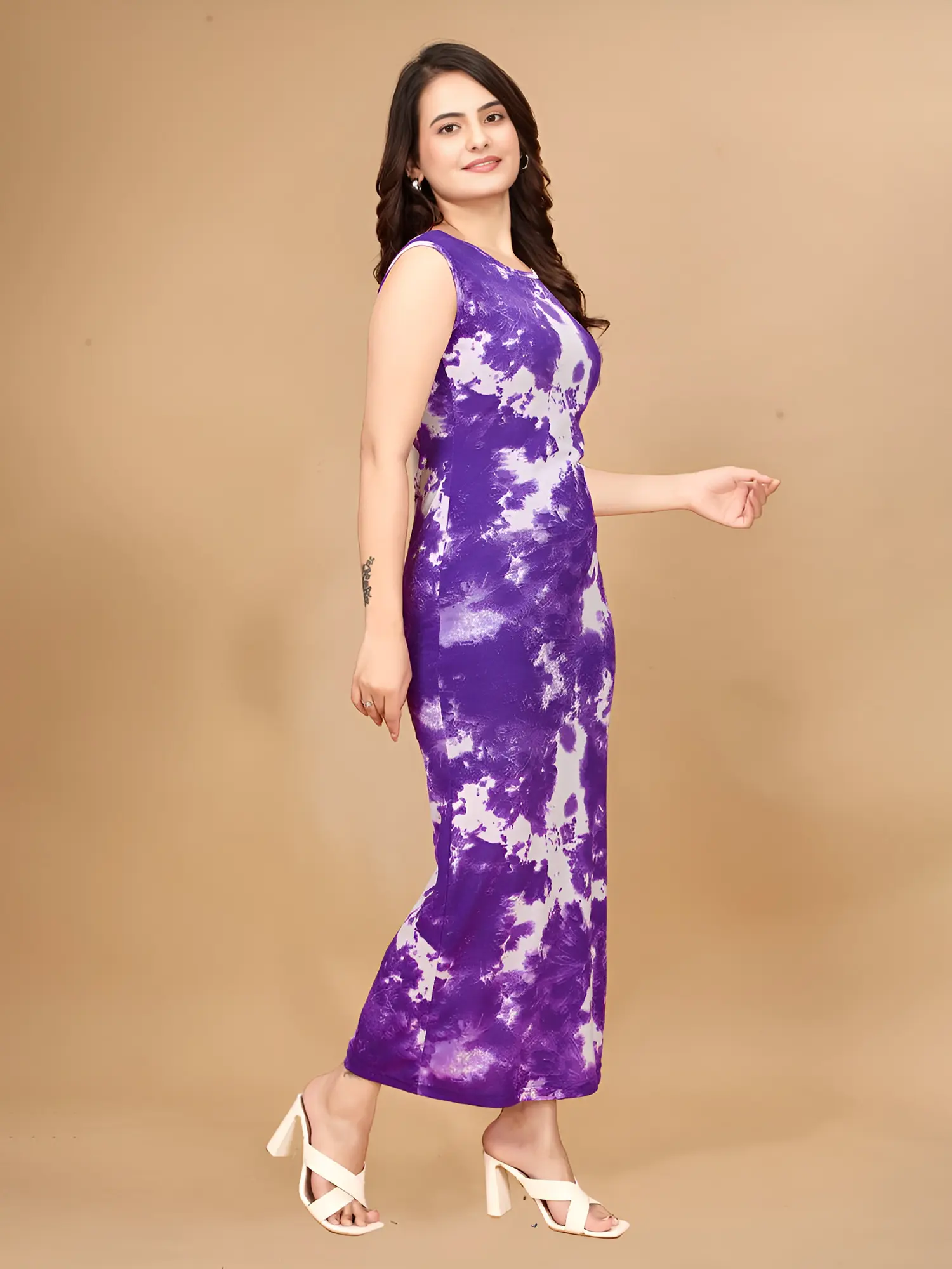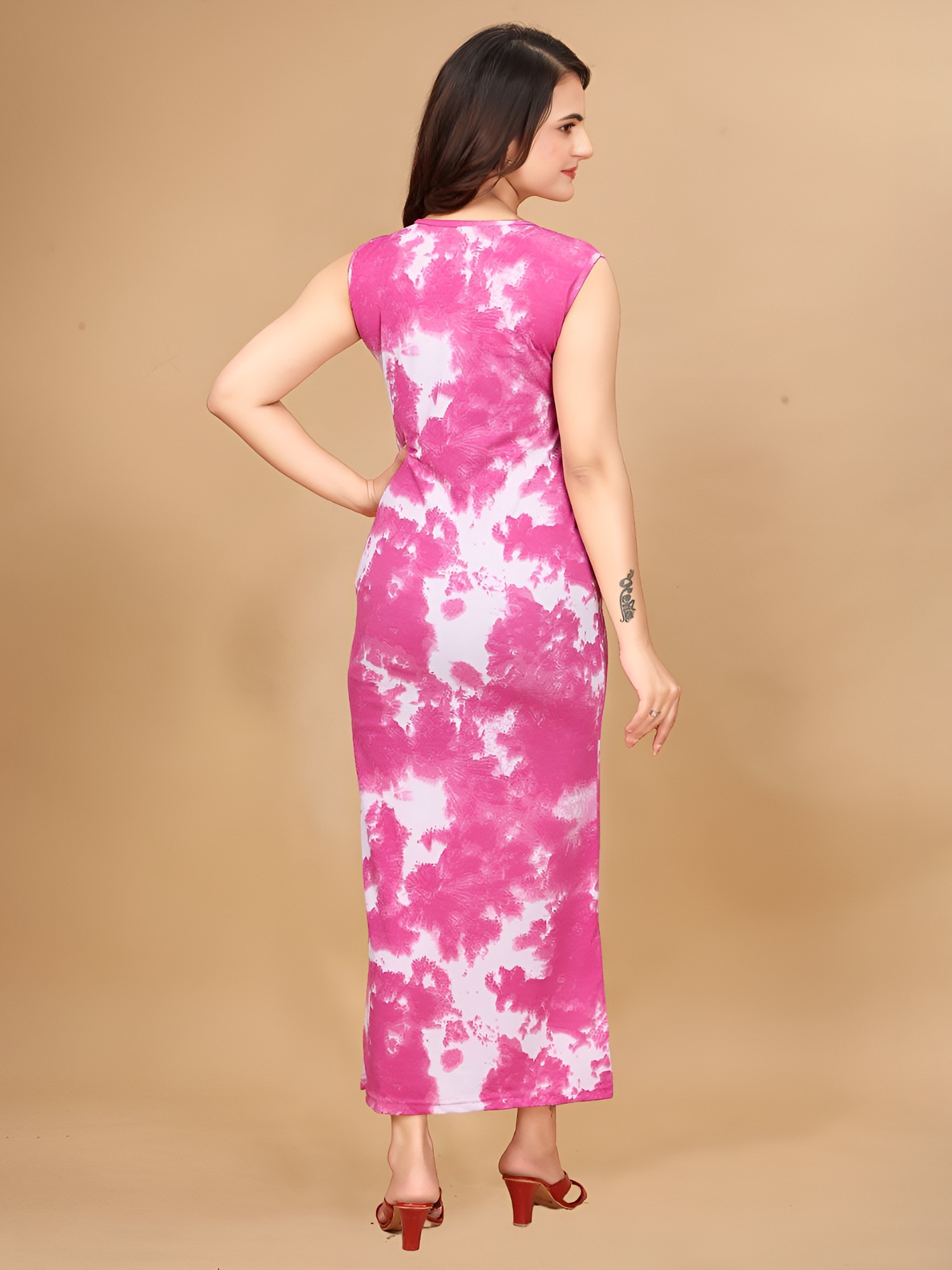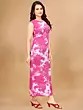 Crafted from high-quality lycra fabric, this gown ensures a comfortable and flexible fit that moves with you. The material is lightweight and breathable, making it ideal for all-night wear. The attractive print adds a playful and artistic touch, making this gown a true statement piece. The pink and white hues blend beautifully, creating a unique and visually appealing design.