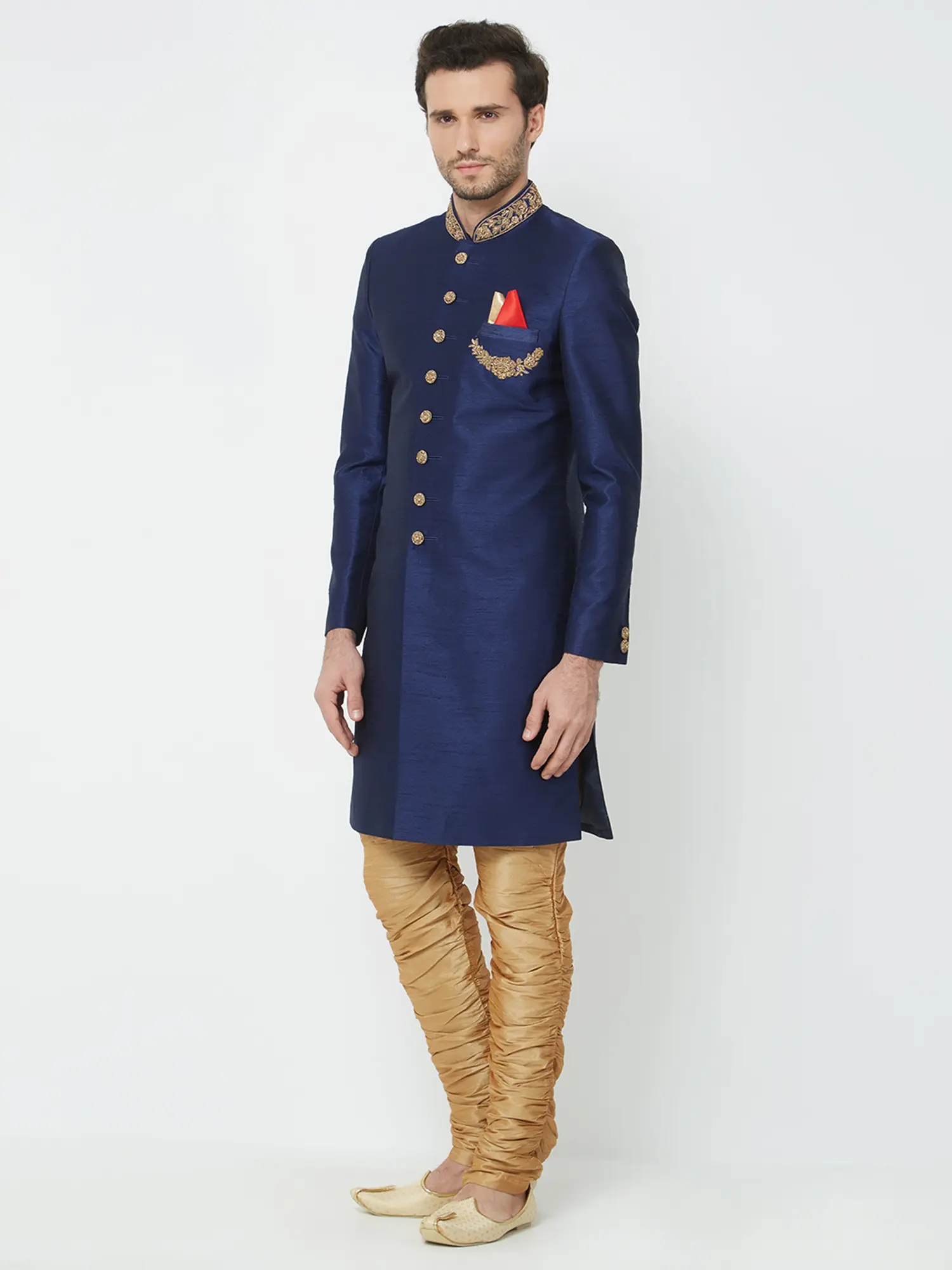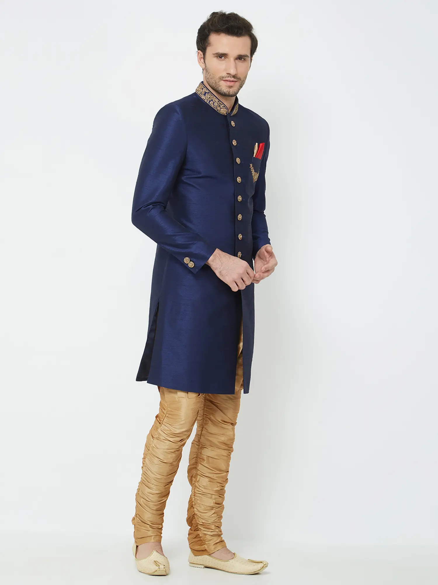 Traditional Groom Outfit: Navabi Sherwani Set with Churidar for Weddings & Receptions