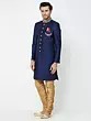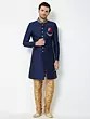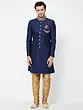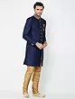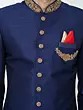 Navy Blue Art Silk Sherwani with Intricate Gold Embroidery for Groom Reception