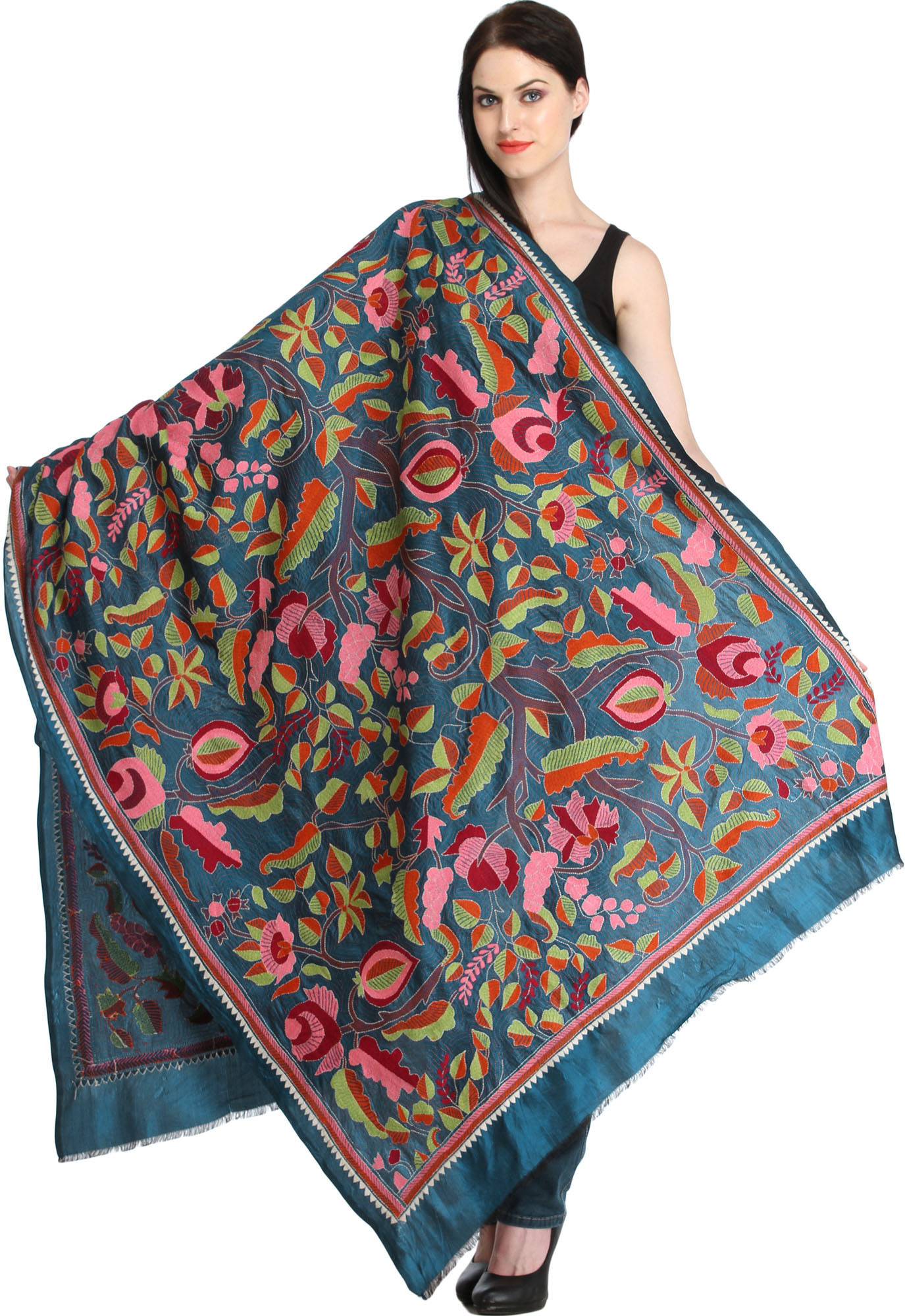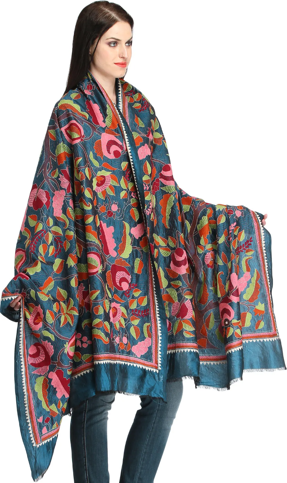 Multicolor Art Silk Scarf with Embellished Border