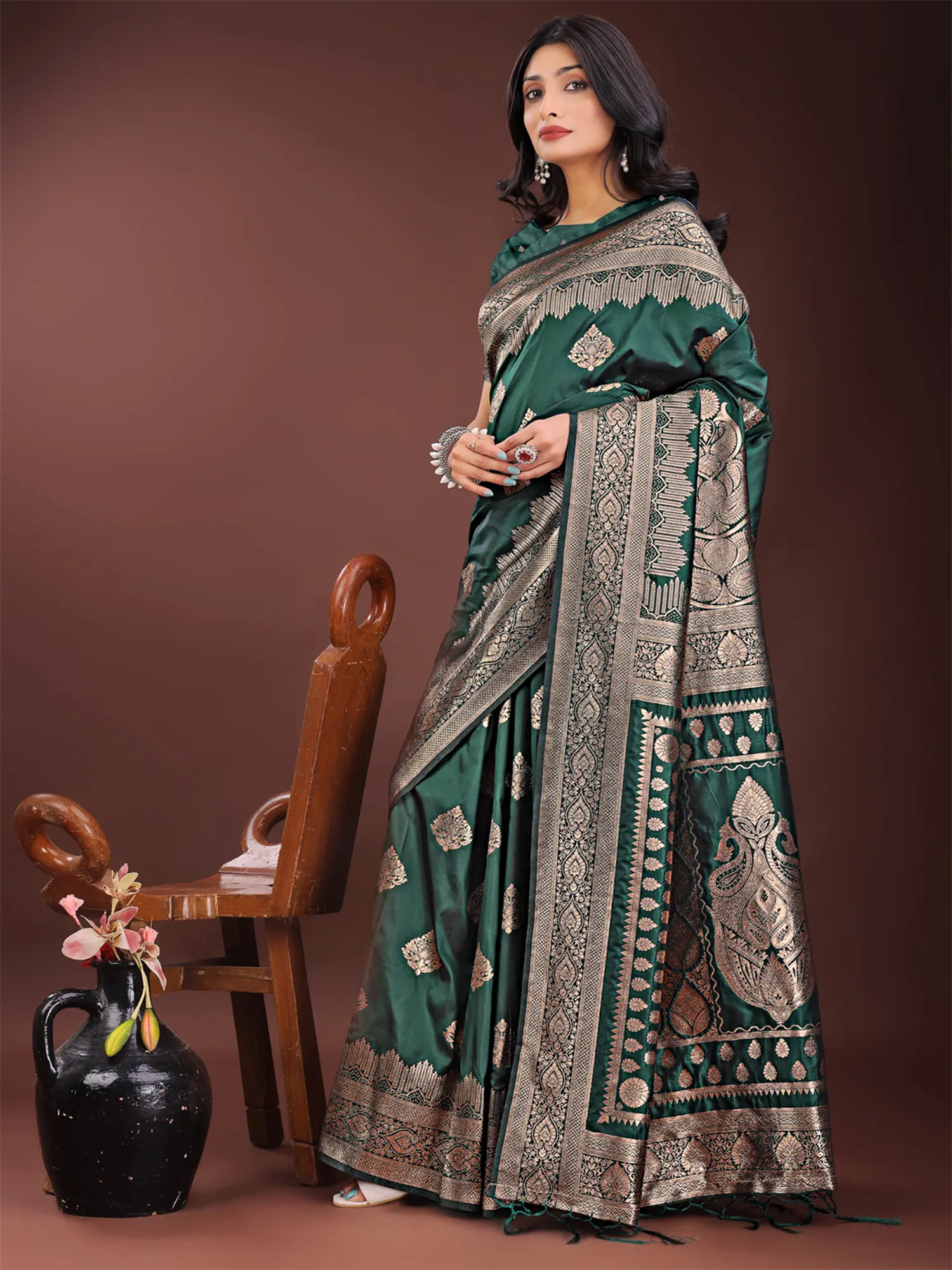 Banarasi Silk Zari Weaving Saree And Golden Lotus Design In Border