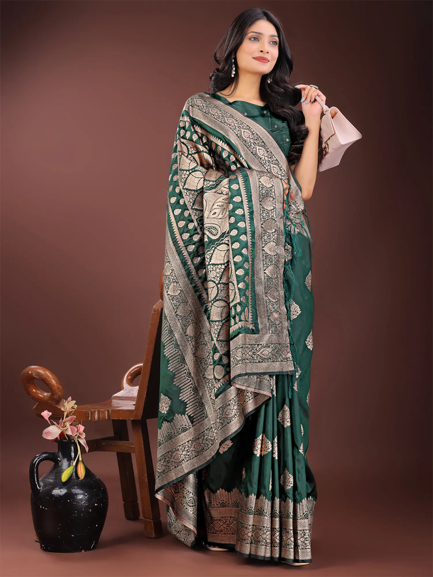 Banarasi Silk Traditional Saree With Flower Design In Border And Blouse