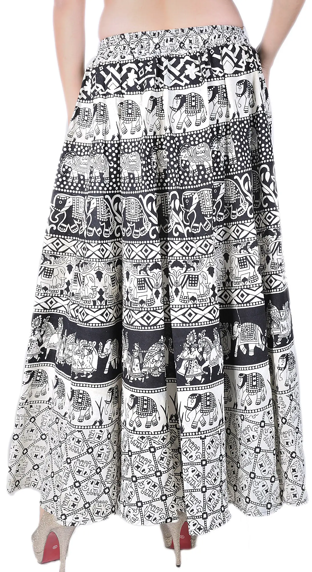 Double-Shaded Elastic Long Skirt with Bandhani Print