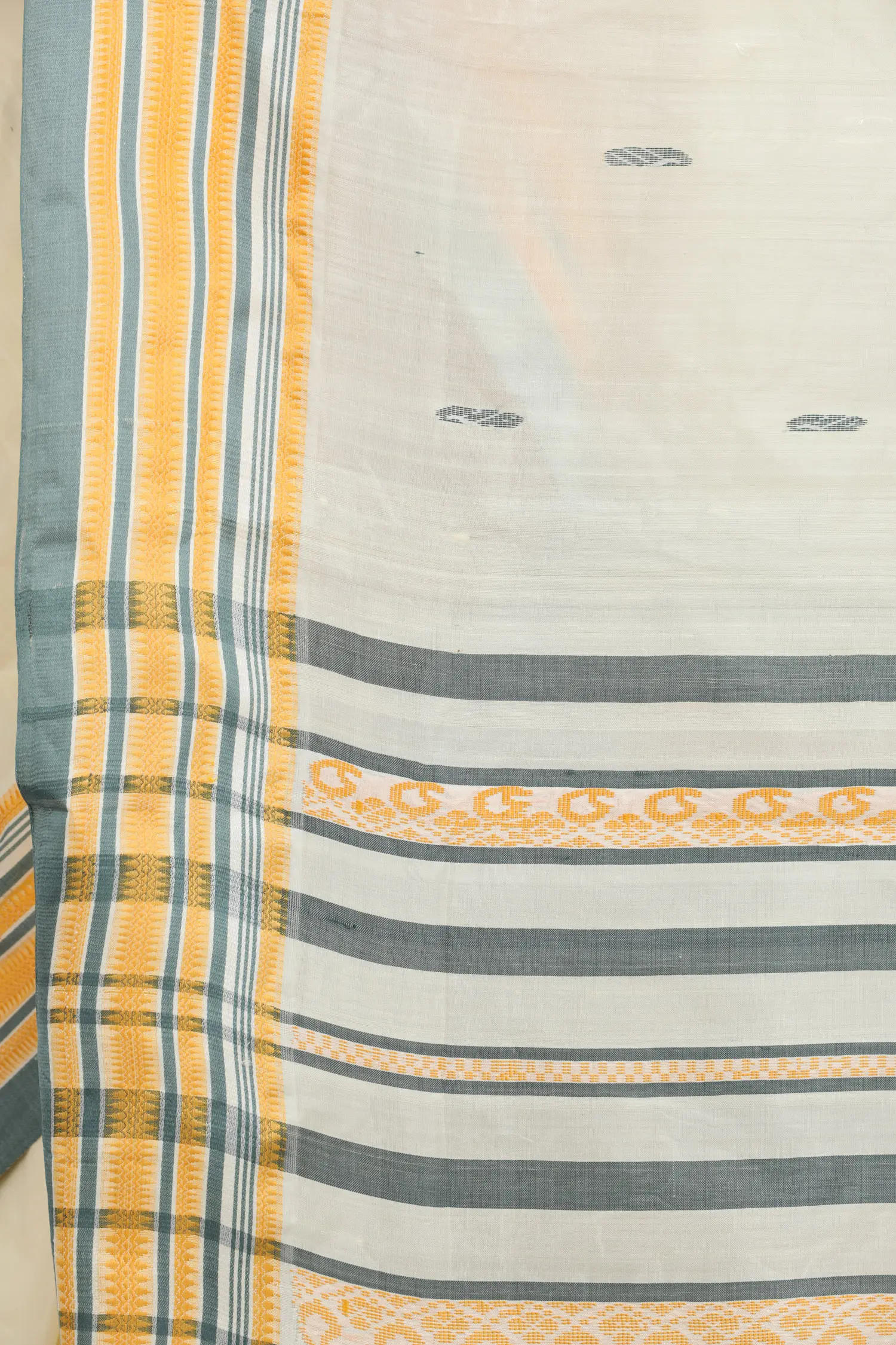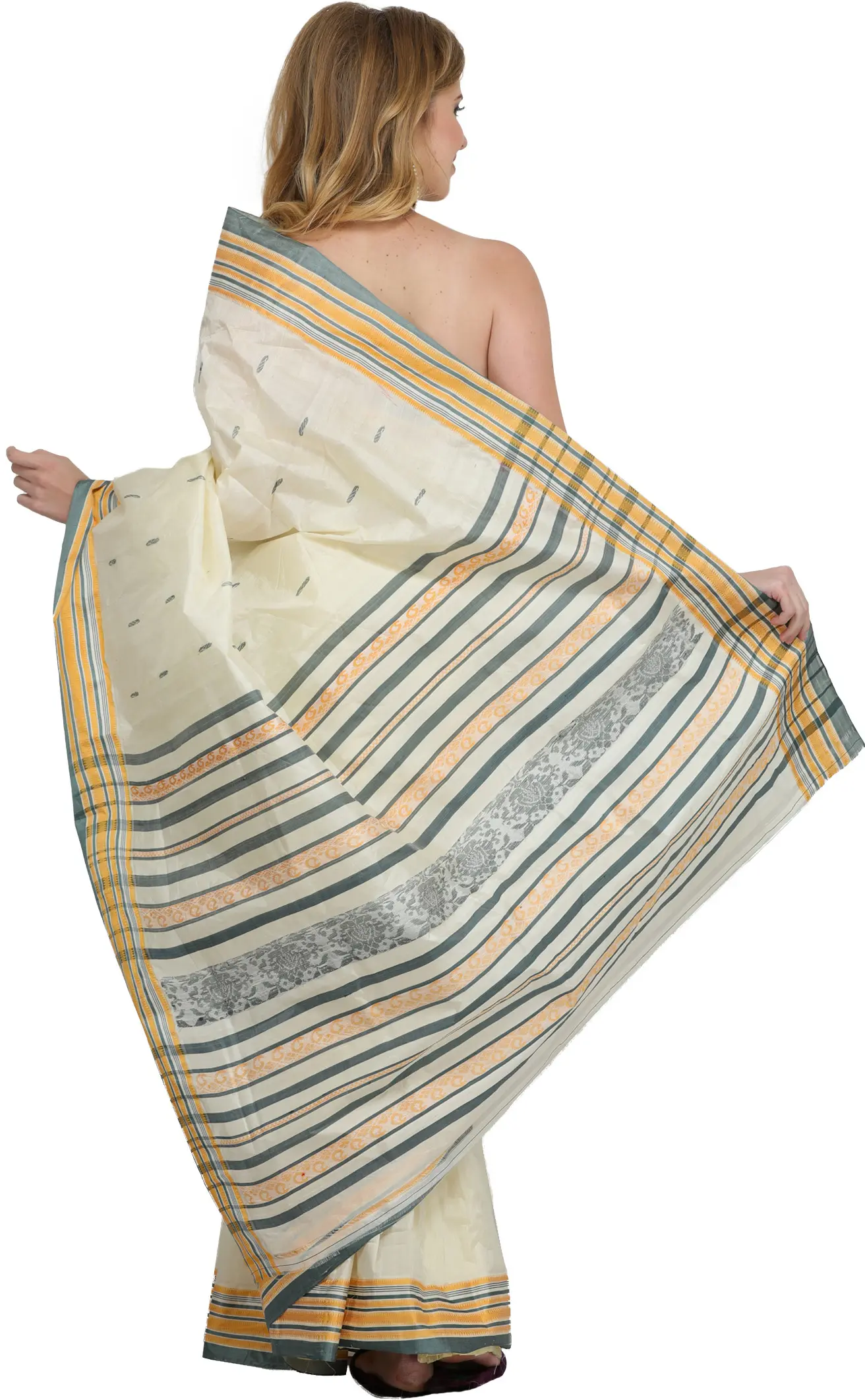 Jade-Lime Chanderi Saree with Hand Woven Flowers and Golden Border