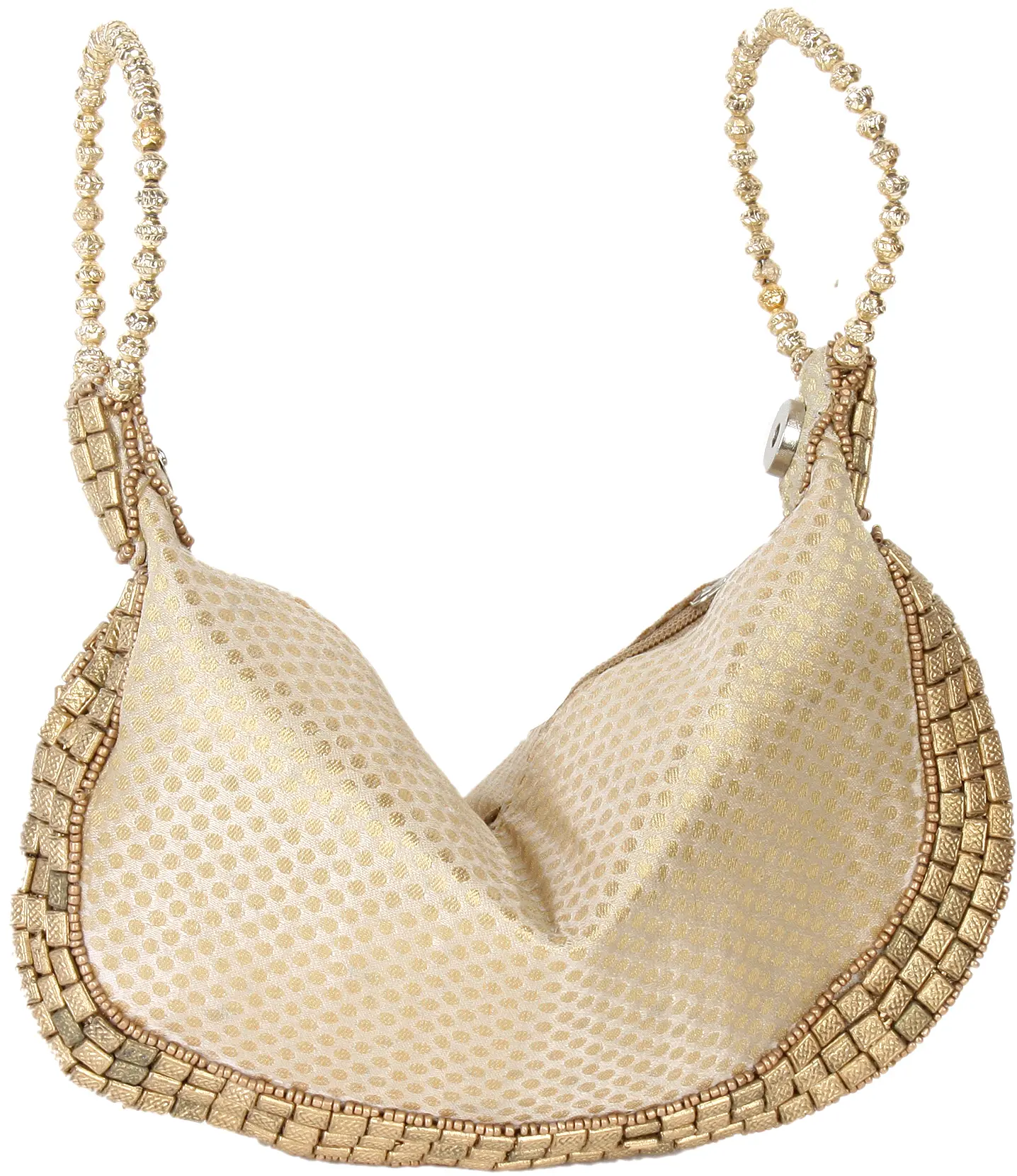Ivory and Golden Bracelet Bag with Brocade Weave and Beadwork