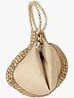 The true magic of this bag lies in its exquisite detailing. The edges are meticulously trimmed with a band of intricately woven beadwork, featuring small, square golden beads interspersed with delicate seed beads. This detailed border not only frames the bag's unique shape but also provides a tactile and visual richness. The handle, a delicate loop, is also a marvel of beadwork. It's formed from multiple strands of shimmering golden beads, some faceted to catch and reflect light, creating a dazzling effect. This bracelet-style handle allows for effortless carrying, adding a regal touch to your stride.