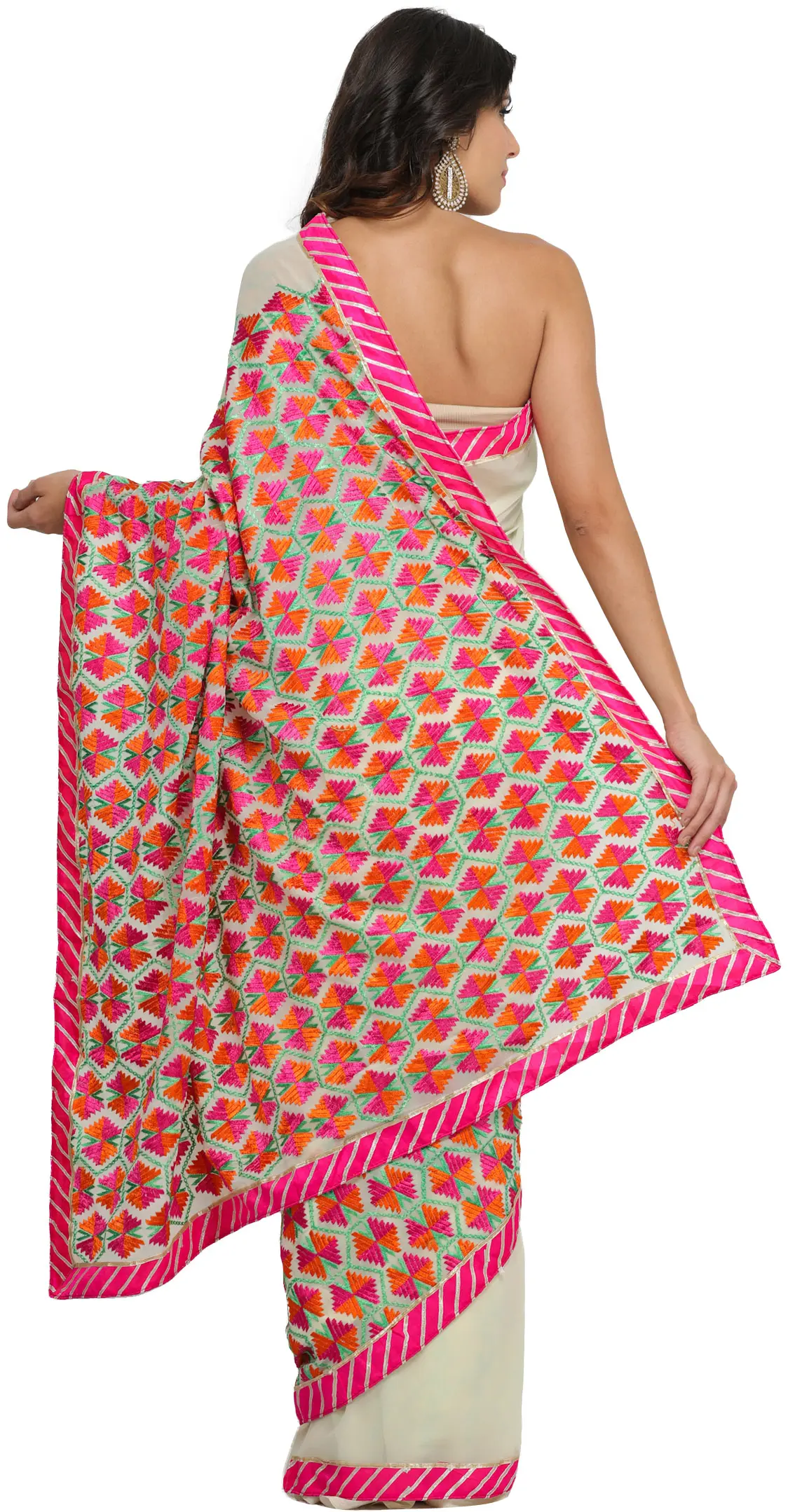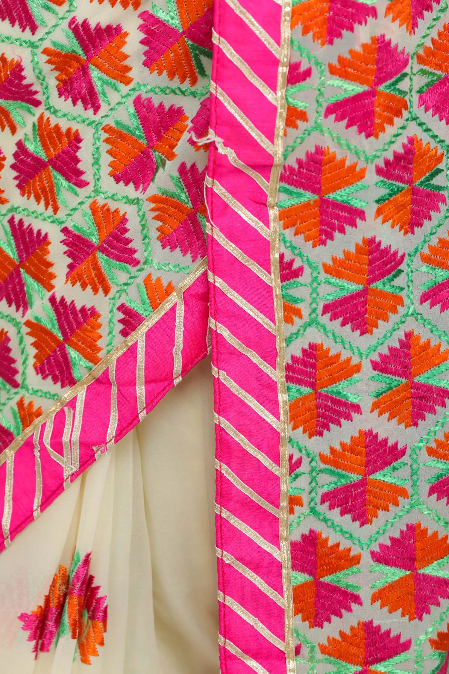 Phulkari Dupatta from Punjab with Embroidery and Gota Border