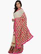 Honey-Peach Crepe Sari From Kashmir with Multi-colored Sozni Embroidery by Hand
