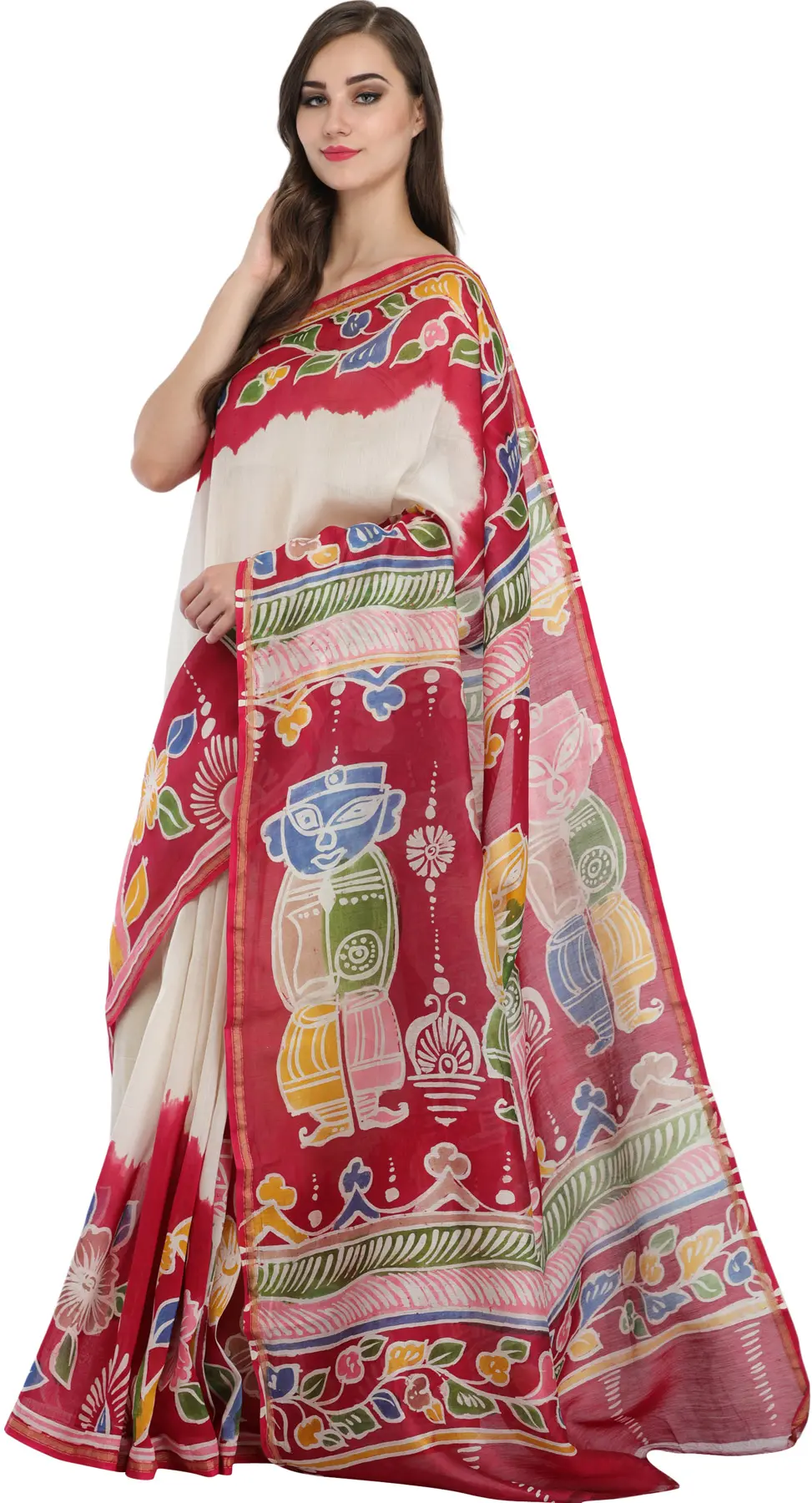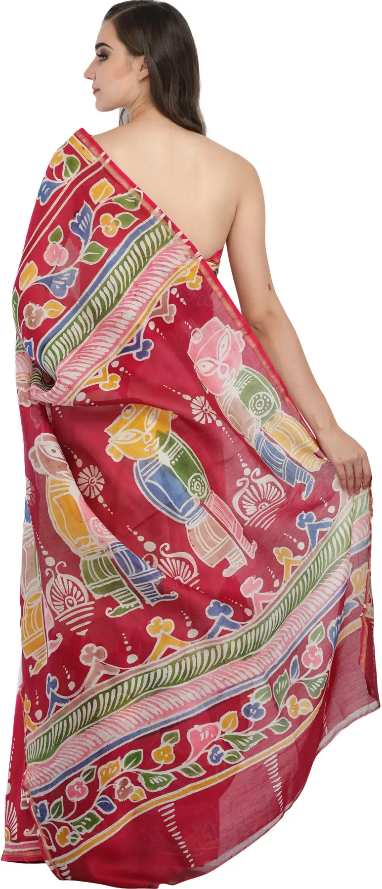 Batik-Dyed Dupatta with Temple Border from Telangana