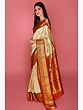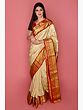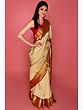 Ivory Kasavu Puja Sari from Kerala with Golden Border