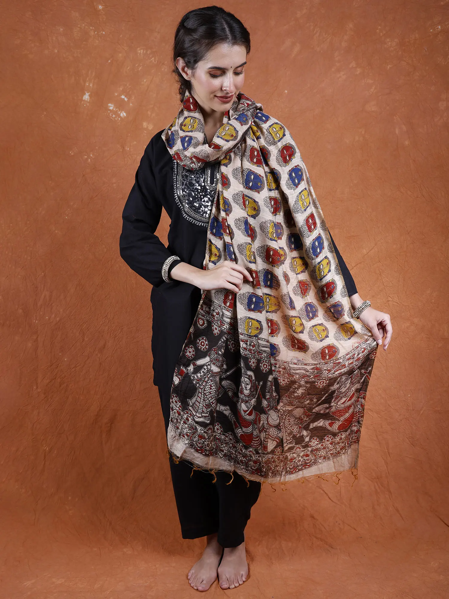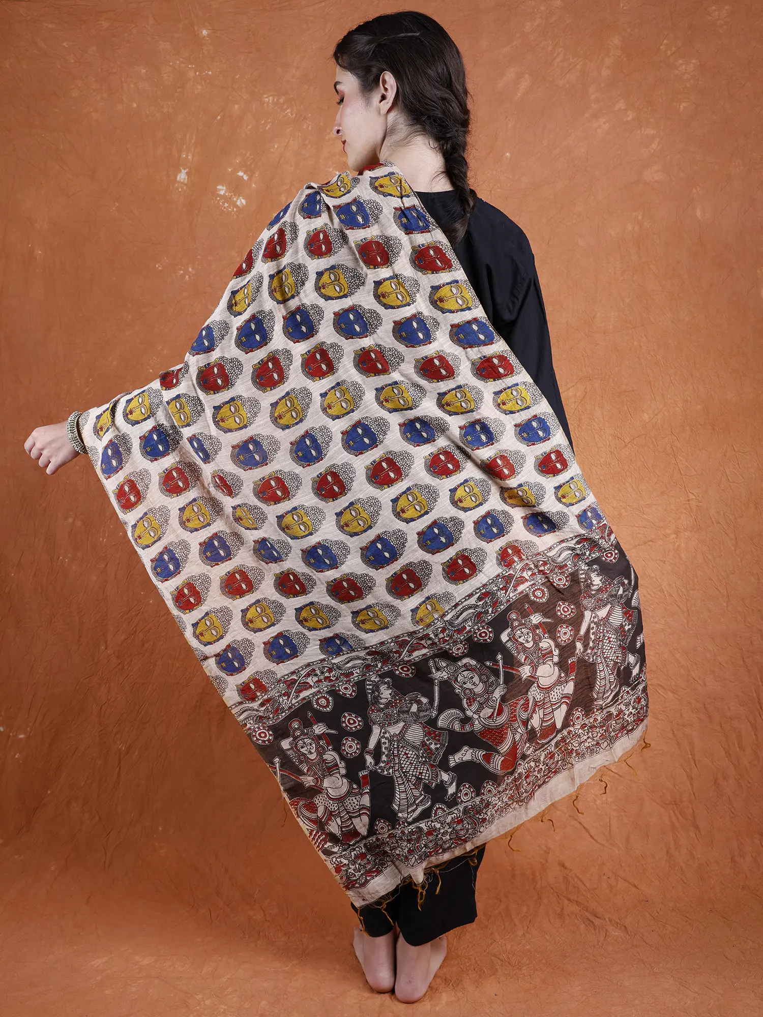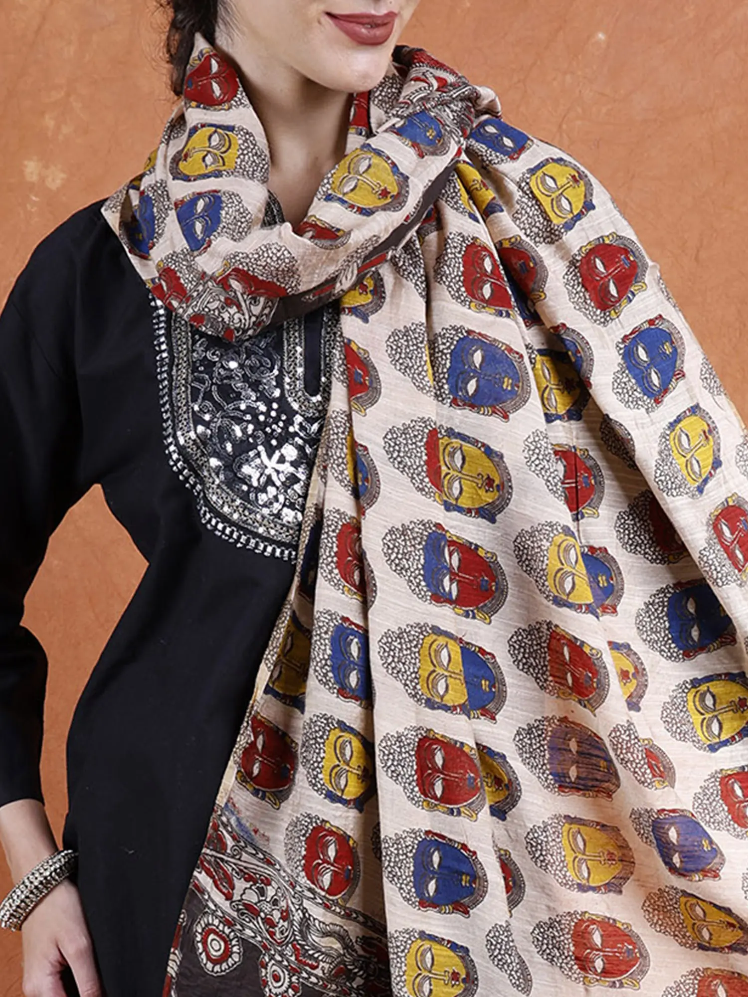 Ivory-Cream Kalamkari Dupatta with Hand-Painted Buddha Heads