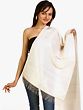 Ivory Shawl from Kutch with Mirror Embroidery and Stripes Border