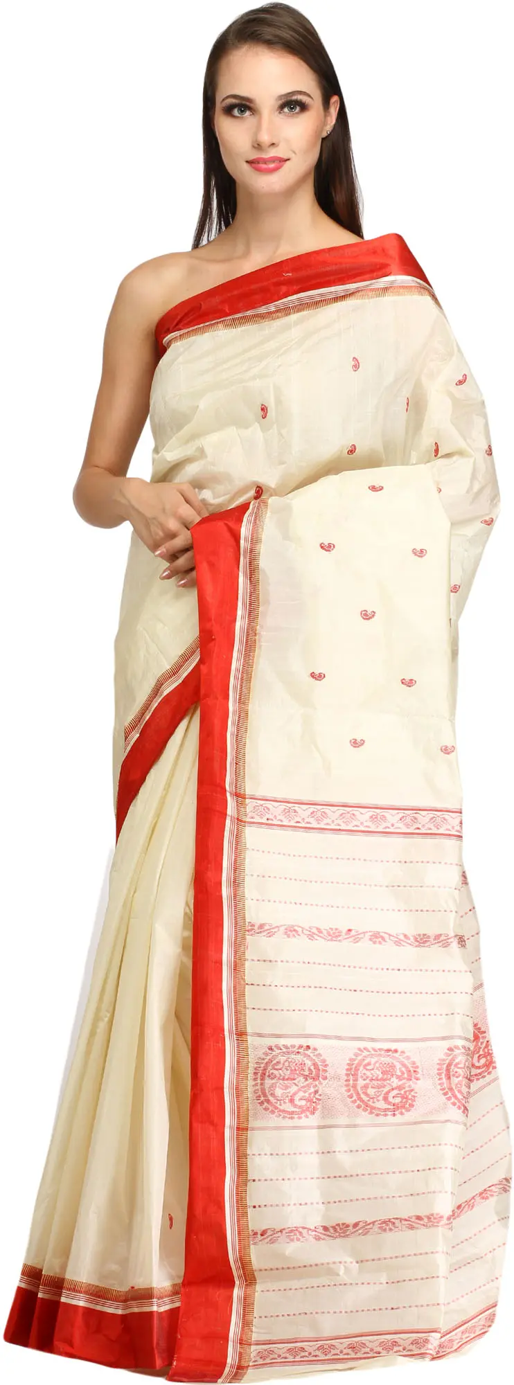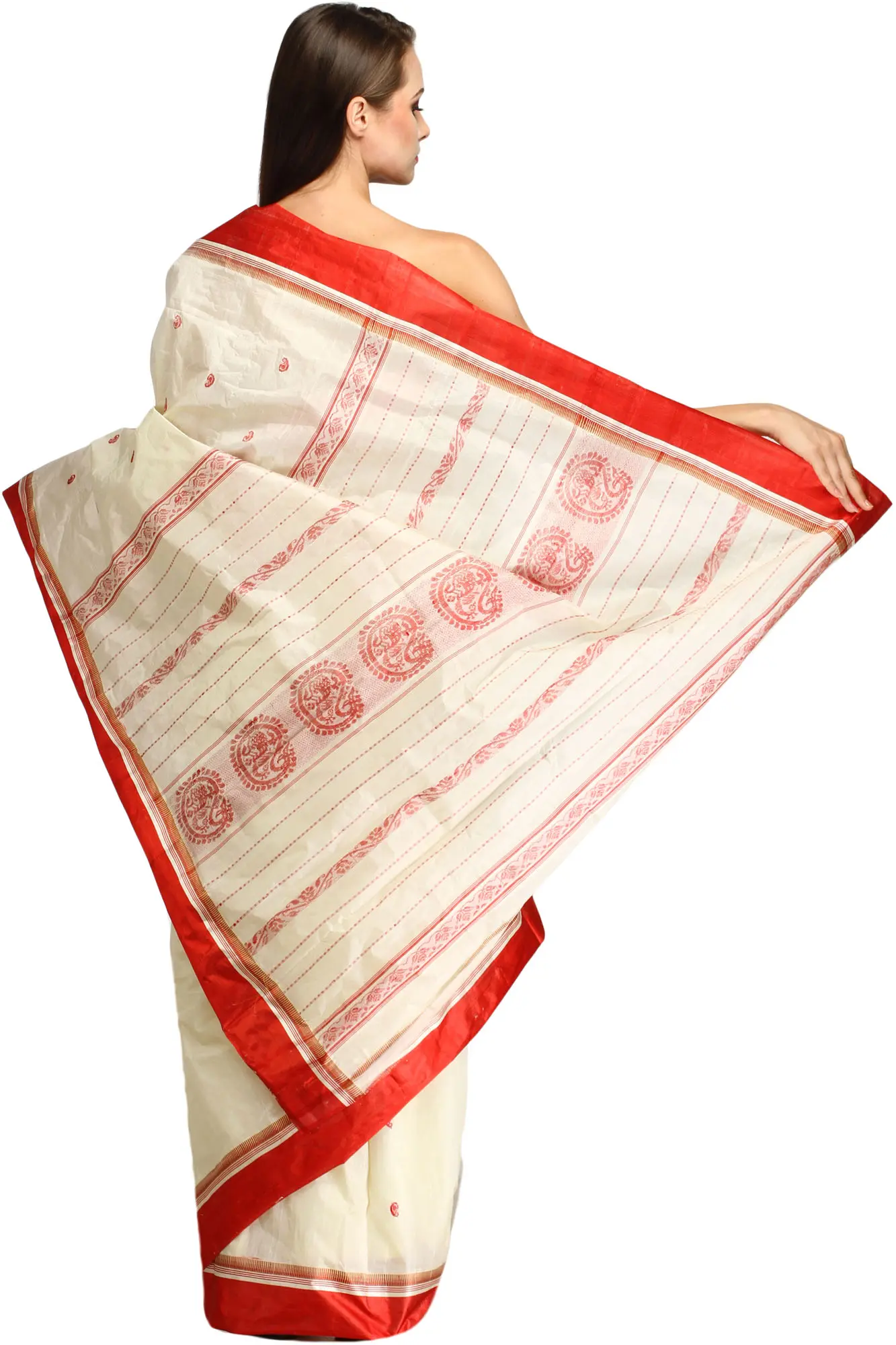 Kalamkari Saree from Telangana with Printed Warli Folk Art Motifs and Peacock-Elephant on Anchal