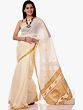 Ivory Kasavu Puja Sari from Kerala with Golden Border