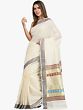 Ivory Kasavu Puja Sari from Kerala with Golden Border