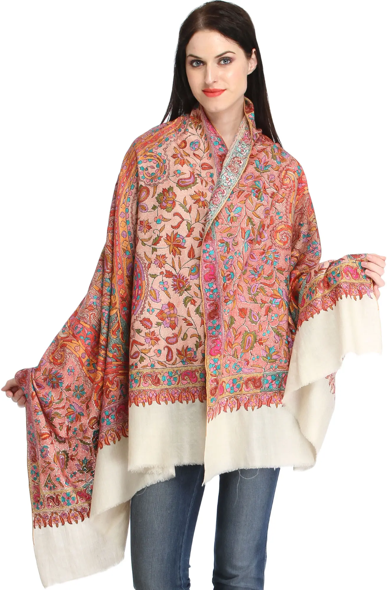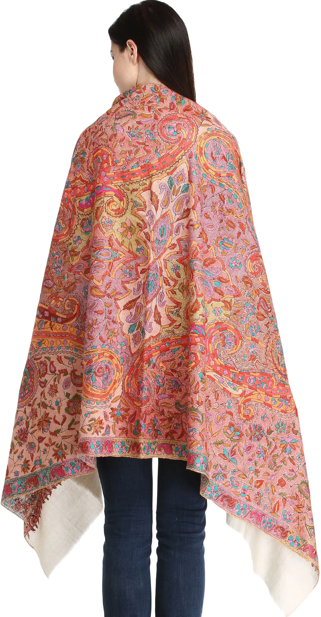 Hand-Embroidered Pure Pashmina Jamawar Shawl with Intricate Multicolor Mosaic Effect Bohemian Paisley-Work