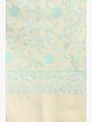 Pure Pashmina Sozni Detailed Embroidery Off White Border Shawl from Kashmir