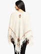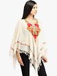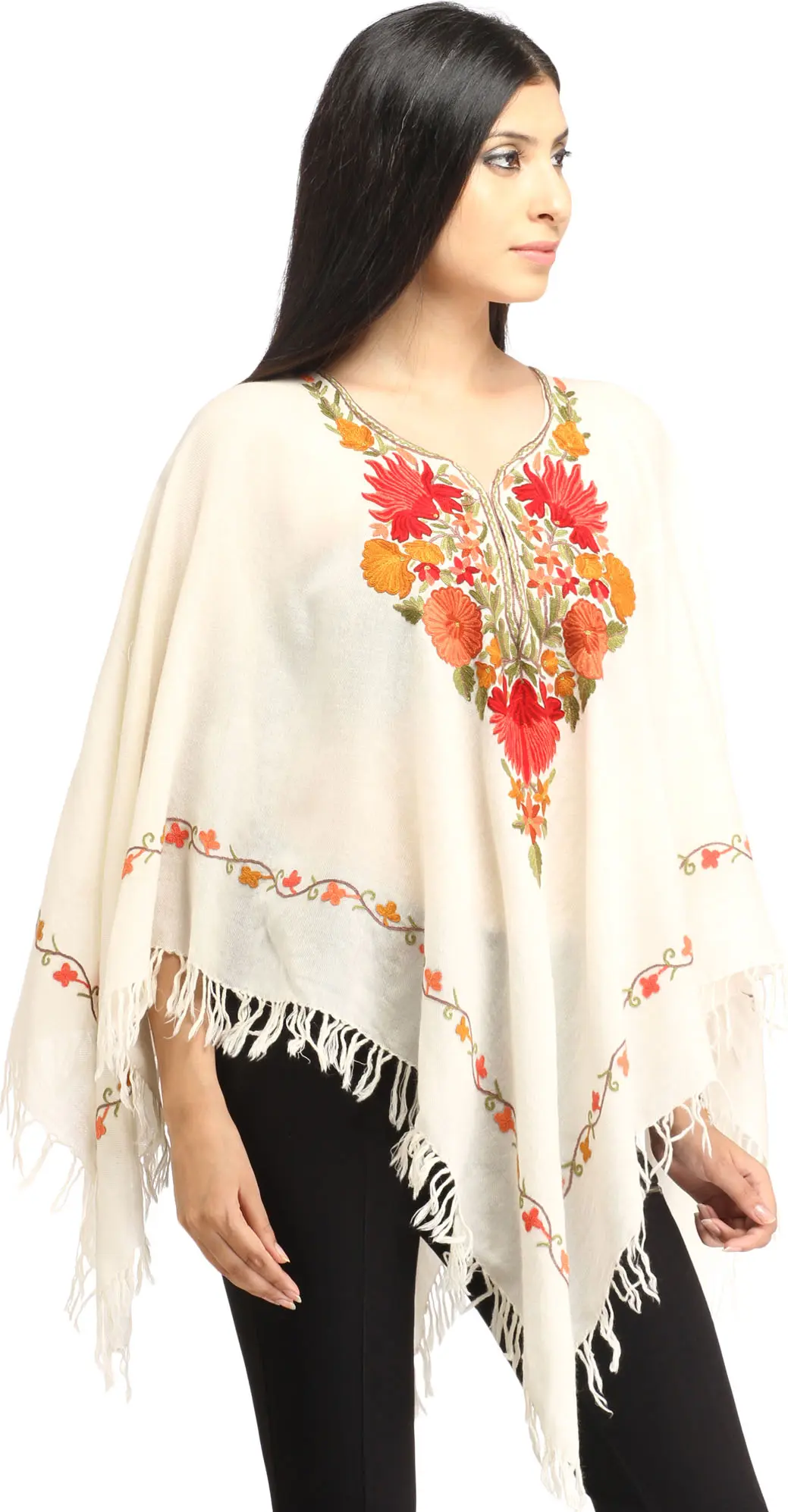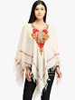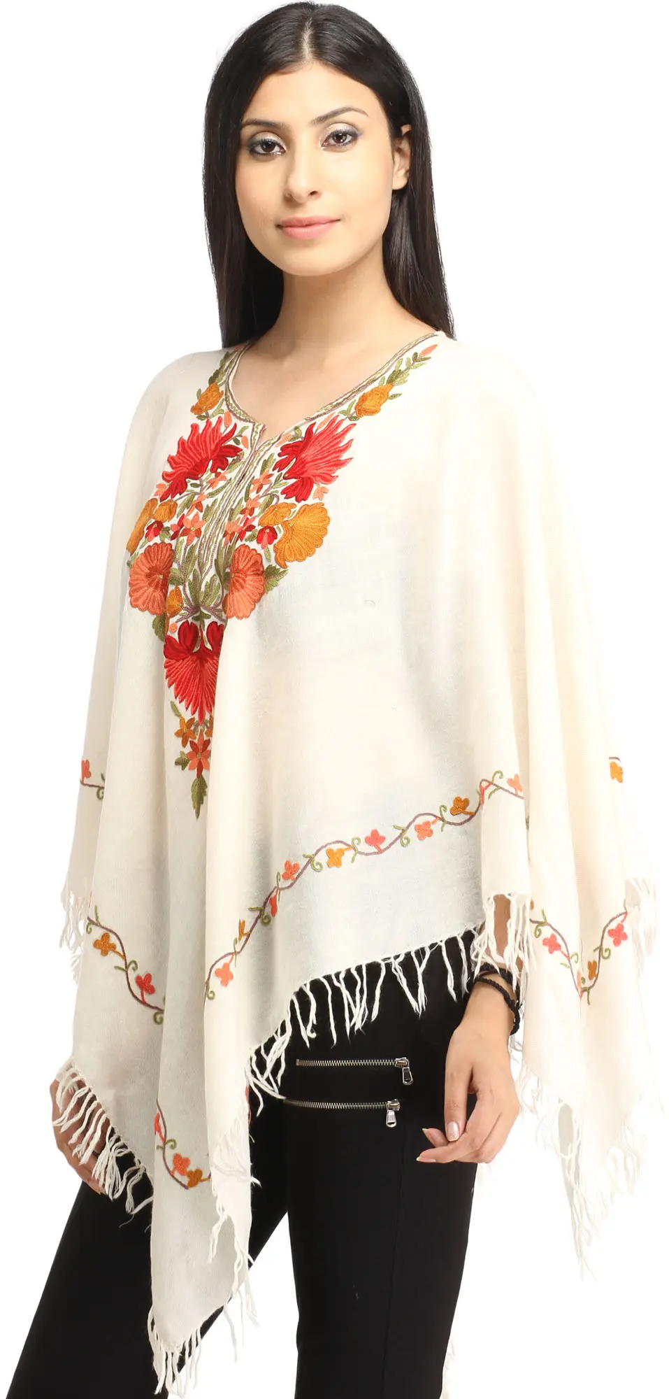 Ivory Poncho from Kashmir with Aari Hand-Embroidered Flowers on Neck