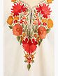 The centerpiece of this stunning poncho is the intricate Aari embroidery that adorns the neckline. Delicate stitches form a breathtaking bouquet of flowers in rich hues of red, orange, and green. Each petal and leaf is rendered with remarkable precision, showcasing the dedication and talent of the embroiderer. This detailed floral motif extends subtly along the hemline, adding a touch of understated charm and framing the garment with delicate vines and blossoms. The fringed edges add a touch of bohemian flair, creating a soft, flowing movement as you wear it.