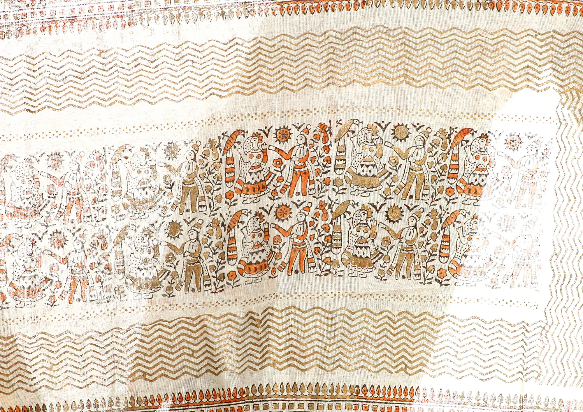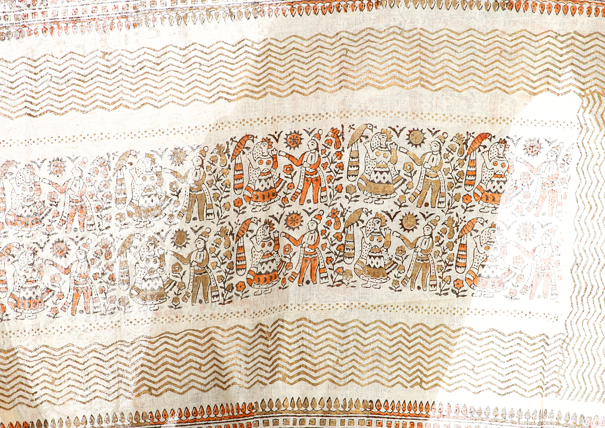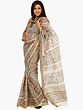 Ivory Sari From Bihar with Block Printed Folk Figures