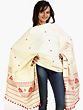 Ivory Stole with Kani Printed Flowers and Embroidered Emblem