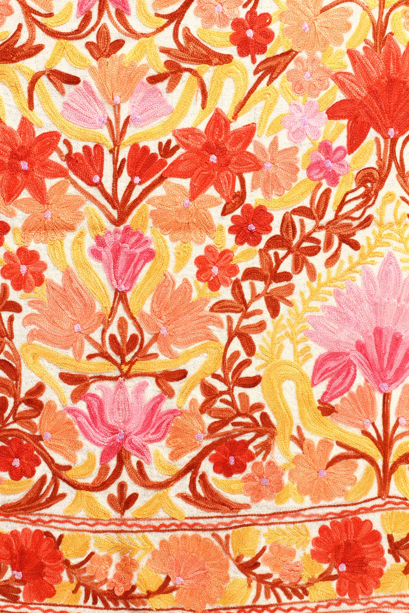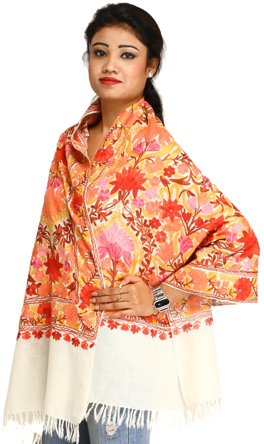 Ivory Tusha Stole with Hashidar Hand Embroidery from Kashmir