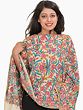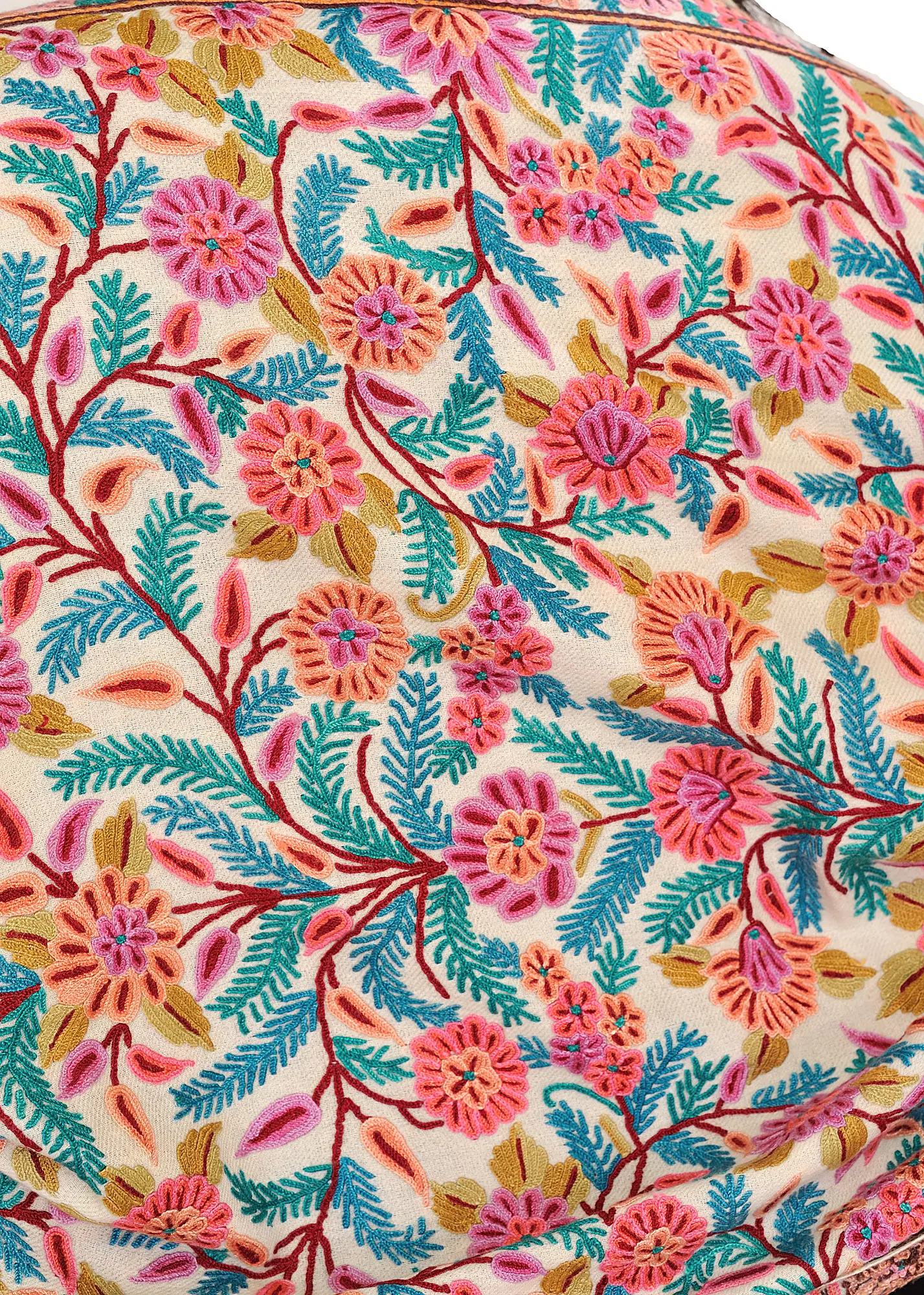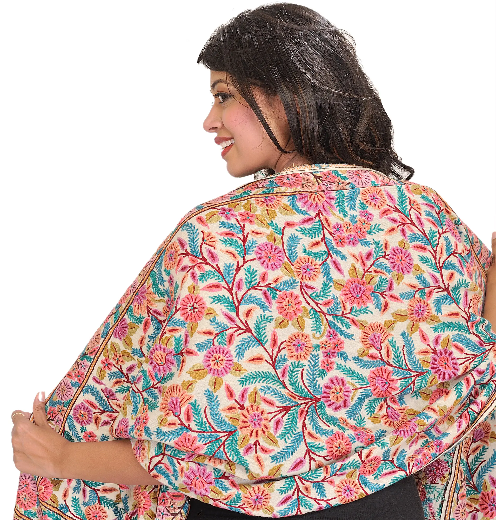Vanilla-Ice Stole from Kashmir with Aari Embroidered Flowers by Hand