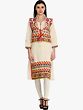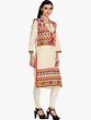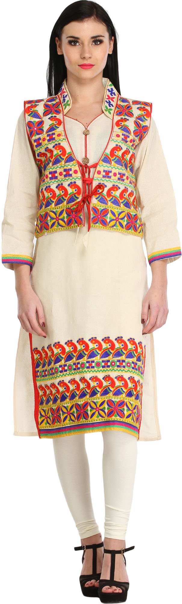 Ivory Suit from Gujarat with Waistcoat and Embroidered Peacocks