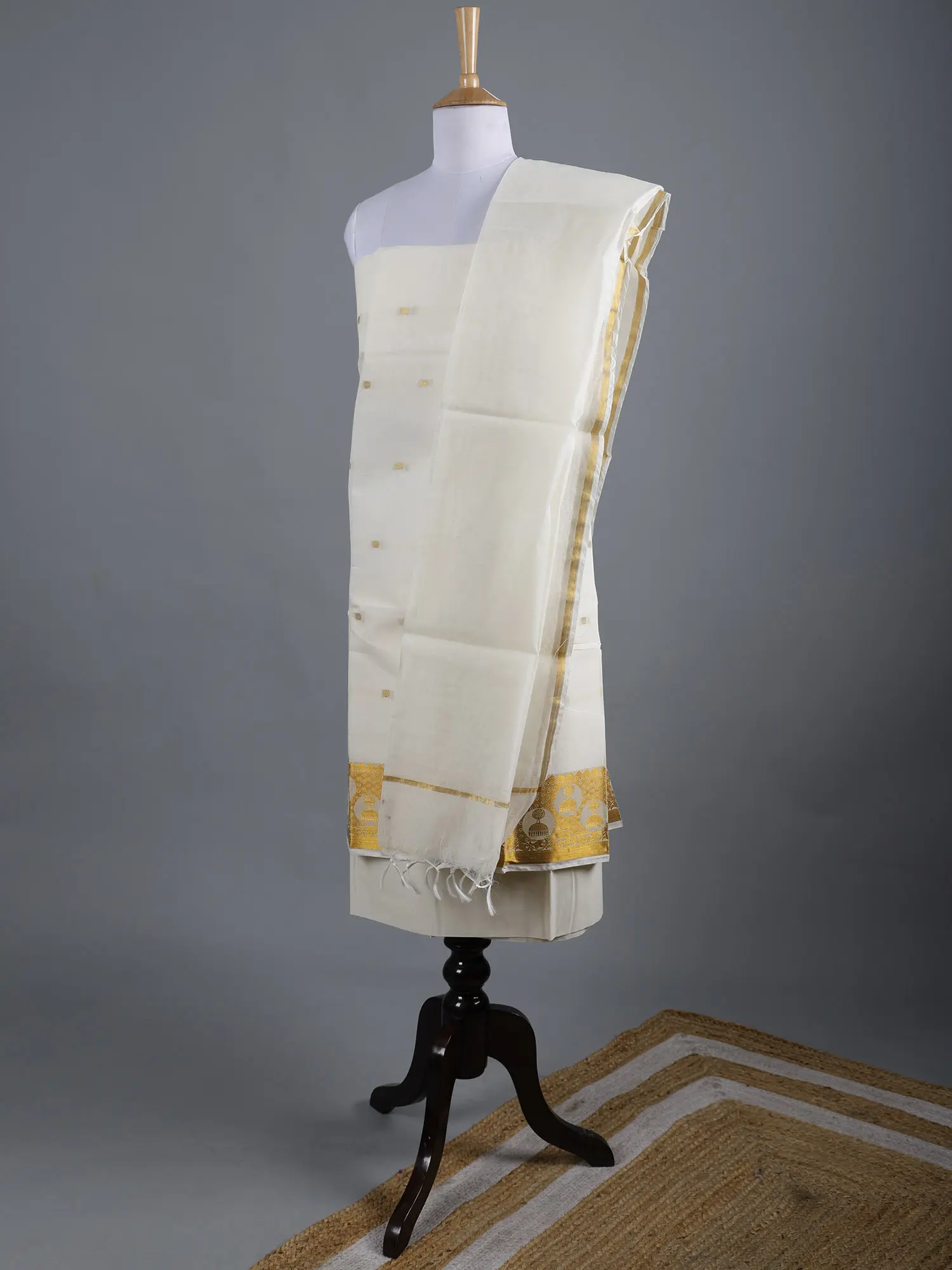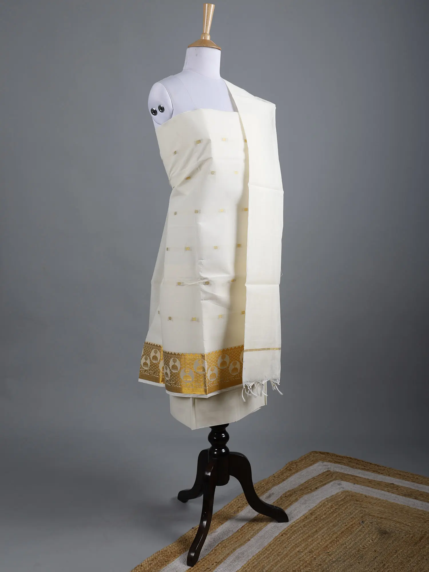 Ivory-Cream Kalamkari Dupatta with Hand-Painted Buddha Heads