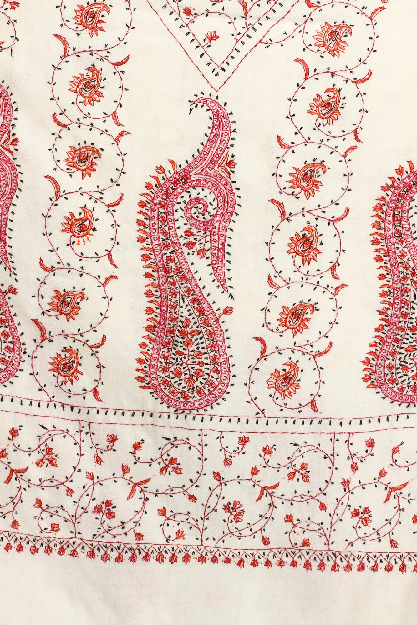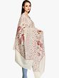 Ivory Tusha Stole with Hashidar Hand Embroidery from Kashmir
