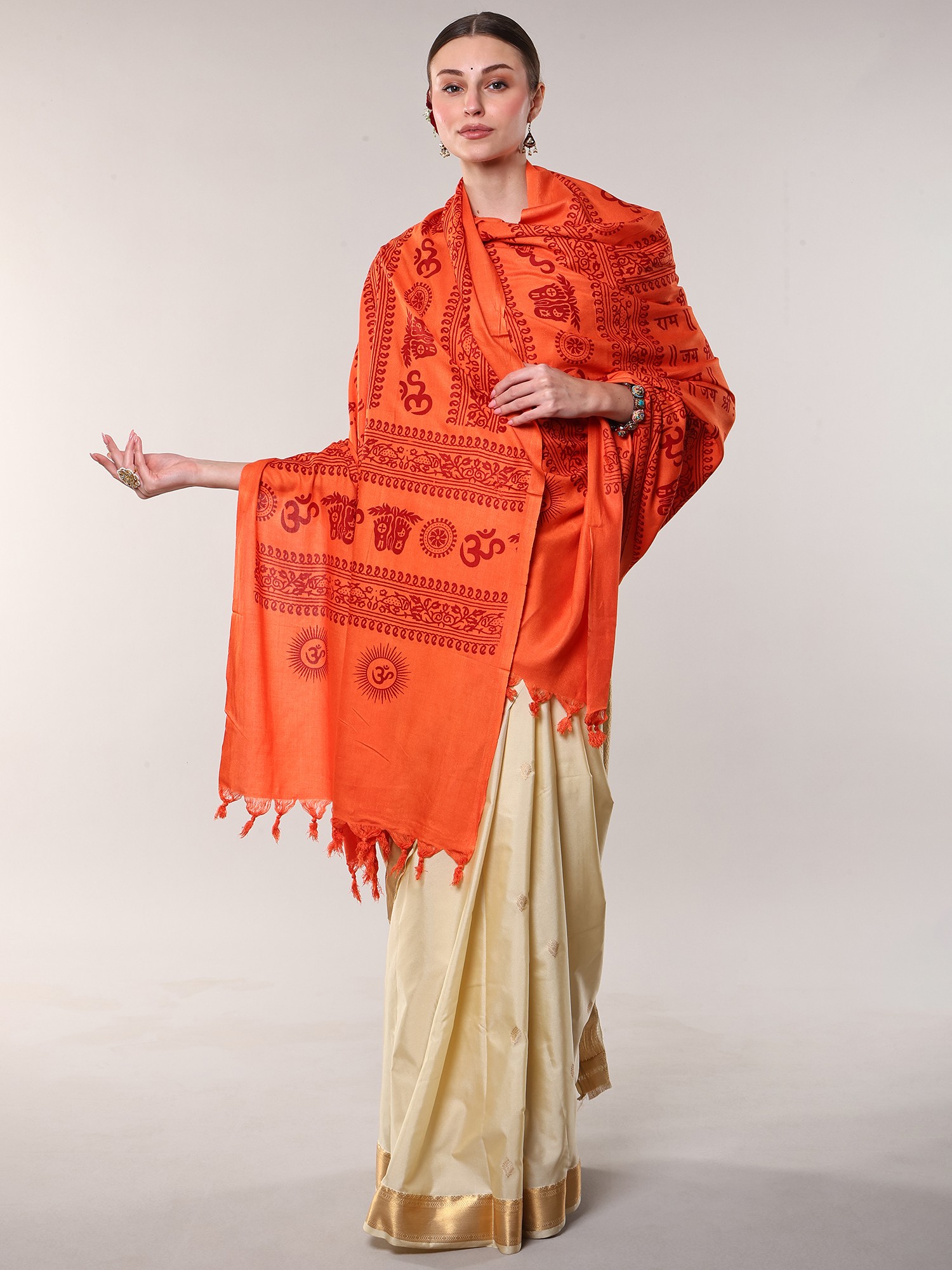 This “Jai Sri Rama Mantra Prayer Shawl” is a magical blend of comfort and spirituality that will envelop you in heavenly tranquility. The Jai Sri Rama mantra, written with extreme accuracy, brings peace and positive energy into your surroundings. During meditation, wrap yourself in the relaxing embrace of this prayer shawl, finding solace in the ancient vibrations of the cherished mantra (Jai Sri Rama).