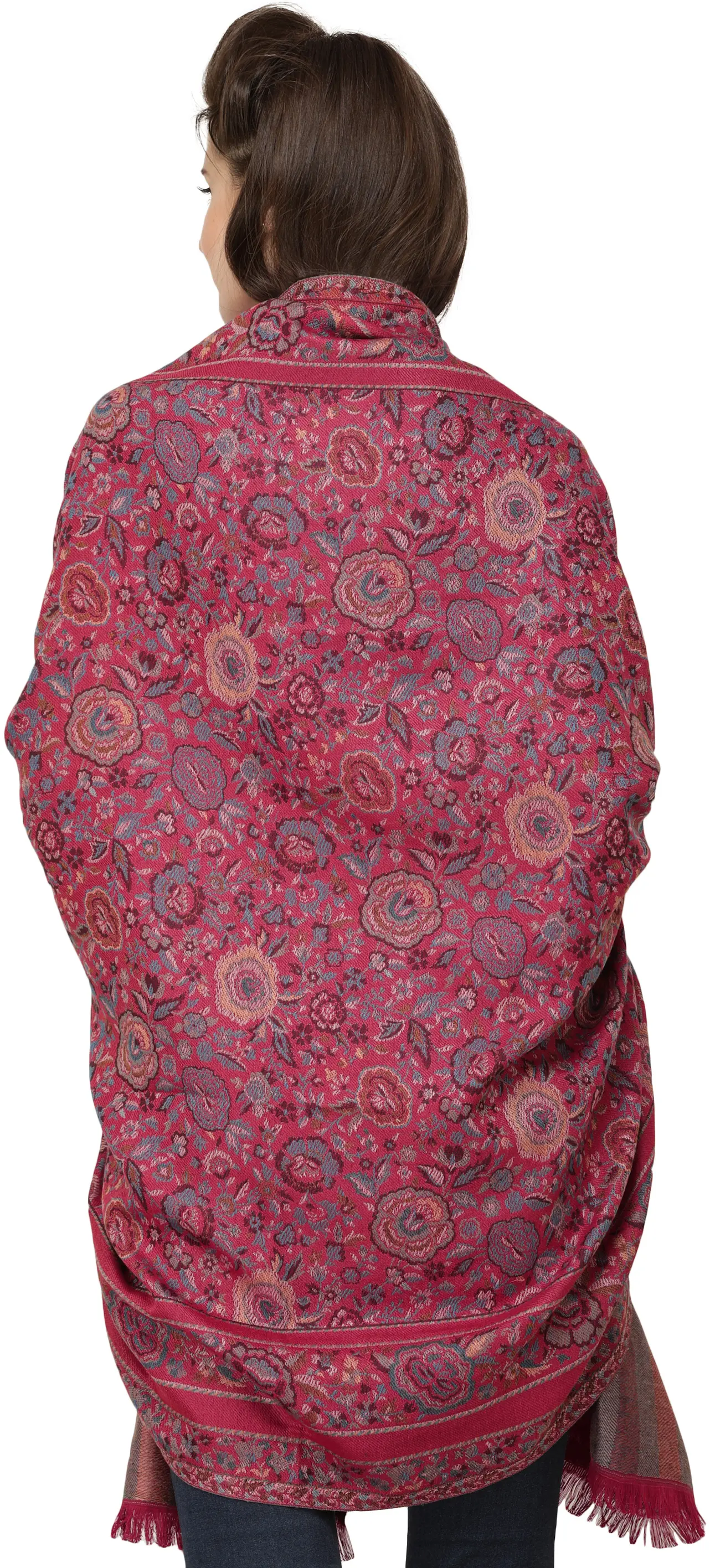 More than just an accessory, this Jamawar shawl is a statement piece. Its generous size allows for a multitude of styling possibilities. Drape it elegantly over your shoulders for a formal event, adding a touch of sophisticated charm to any ensemble. Wrap it snugly for cozy comfort on a casual outing, infusing your everyday look with a bohemian spirit. It pairs beautifully with both traditional Indian attire like kurtis and lehengas, and also lends a unique, artistic touch to Western wear such as plain dresses, jeans, or tailored jackets. It's an investment in timeless style, designed to be cherished for years to come.