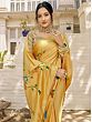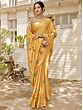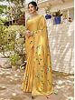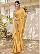 Satin silk in traditional Indian women’s wear is a lovely material that balances comfort and luxuriousness, something which you seek in the ensembles of your big days. This Satin silk saree is meticulously hand-painted, with the freshness of blooming exotic flora, in appealing colors that appear enchanting against the hushed tone of the field. With a row of tassels on the pallu and golden piping on the border, this is a minimalistic piece of attire, which will let your natural beauty shine the brightest.