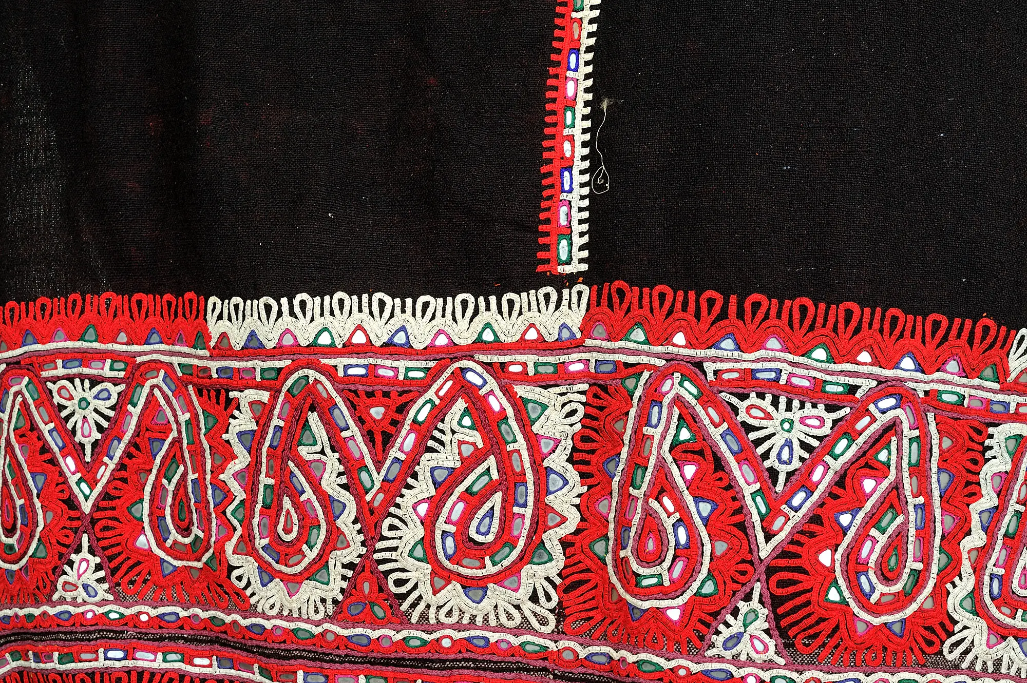 Jet-Black Antiquated Shawl from Kutch with Rabari Embroidered Border and Mirrors