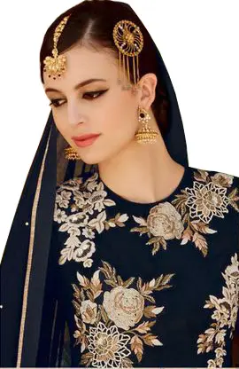 Jet-Black Palazo Salwar- Kameez Suit with Embroidered Flowers and Heavy Dupatta