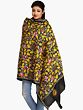 Lambs-Wool Nakshi Kantha Dupatta with Black Color Hand Embroidered Warli Inspired Motif