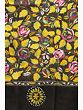 The design is an ode to the natural world, with an abundance of lush green leaves forming a verdant backdrop. Interspersed amongst the foliage are delicate roses in shades of blush pink and soft white, their petals outlined with contrasting threads that make them pop against the dark silk. Accents of vibrant yellow and pops of fuchsia add further depth and visual interest, creating a captivating interplay of color that is both lively and sophisticated. The embroidery, a signature Kantha style, is characterized by its running stitch technique, which creates a subtly textured, almost quilted effect, adding a luxurious dimension to the overall feel. ––––––––––––––––––––