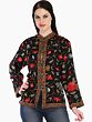 Long Black Wool Jacket Featuring Aari Embroidered Floral Butta and Paisleys