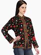 Long Black Jacket with Intricate Gold Flower Embroidery & Side Pockets