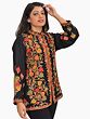 Phantom-Black Long Kurti from Kashmir with Aari Embroidered Flowers and Maple Leaves