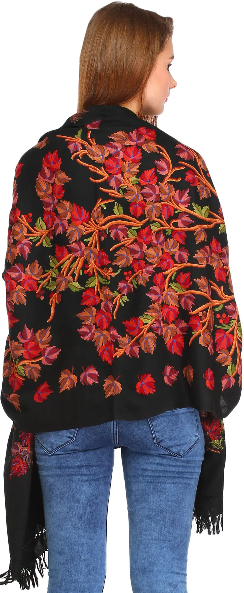 The motif of the maple tree symbolizes strength, resilience, and the beauty of change. Adorning yourself with this stole is like carrying a piece of nature's enchantment with you, a constant reminder of the cycles of beauty and renewal found in the world around us. The quality of the pure wool and the meticulous hand-embroidery ensure that this stole is not only a stunning visual piece but also a durable and cherished addition to your collection for years to come.