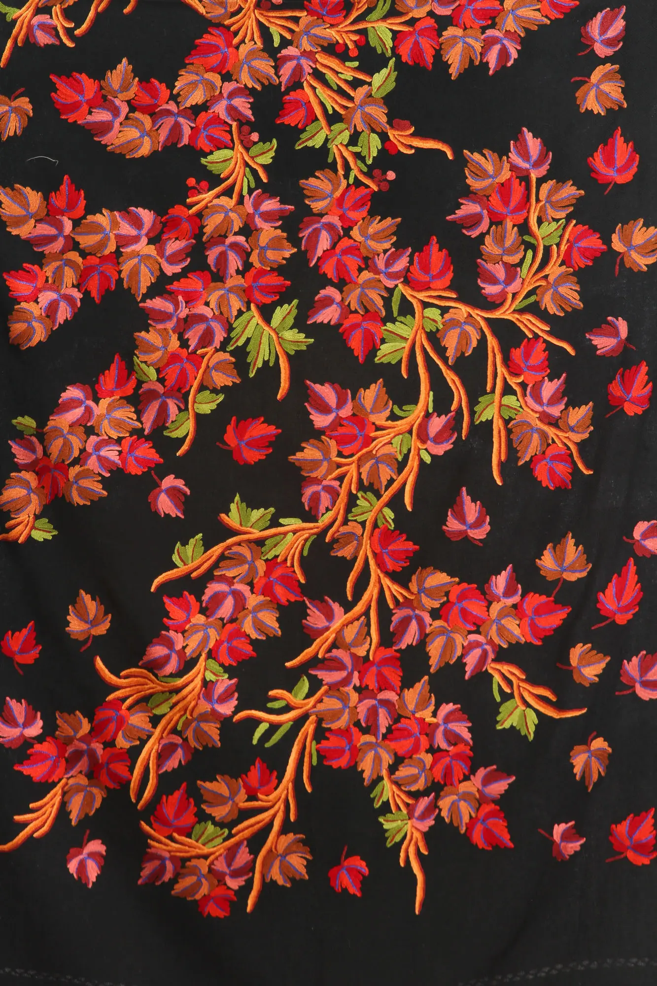 Stole from Kashmir with Aari-Embroidered Maple Leaves by Hand