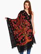 Discover a piece of wearable art that embodies the rich heritage of Kashmiri craftsmanship. This exquisite stole, crafted from the finest pure wool, offers a luxurious and comforting embrace. The deep, jet-black canvas serves as the perfect backdrop for a vibrant and intricate Aari hand-embroidery, depicting a magnificent maple tree in the full bloom of autumn.