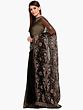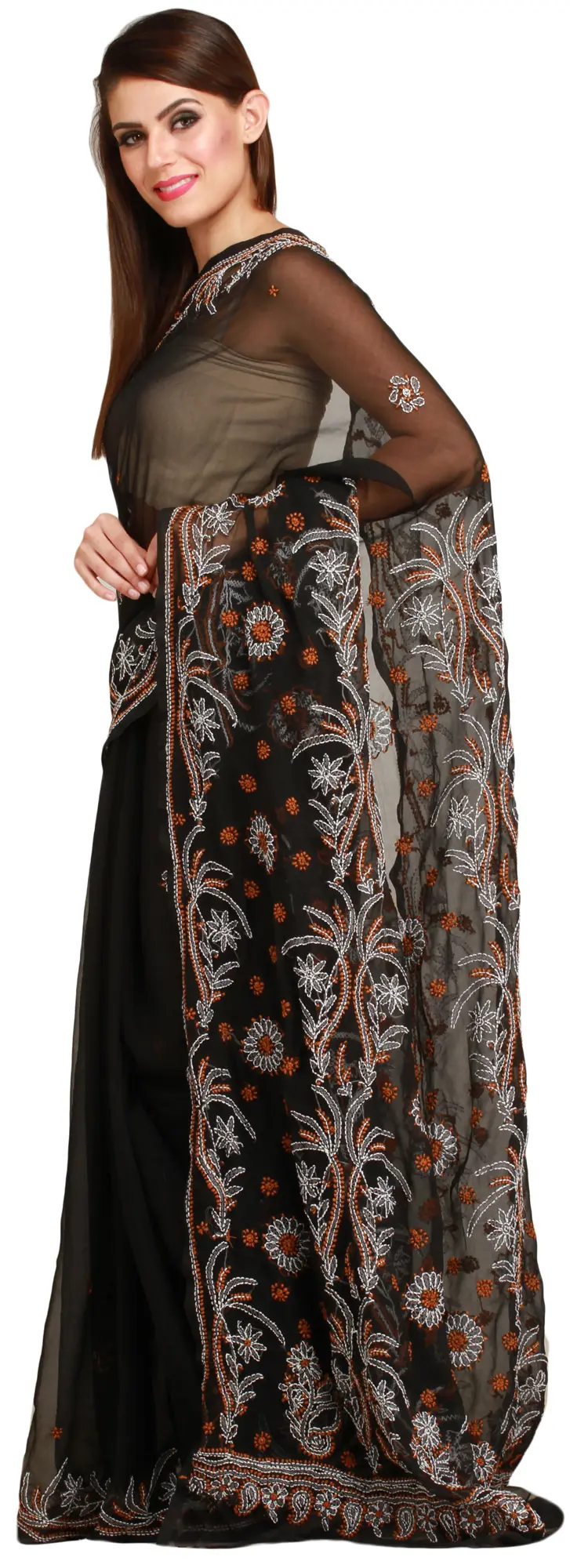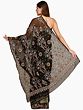 Jet-Black Lukhnavi Chikan Sari with Floral-Embroidery by Hand