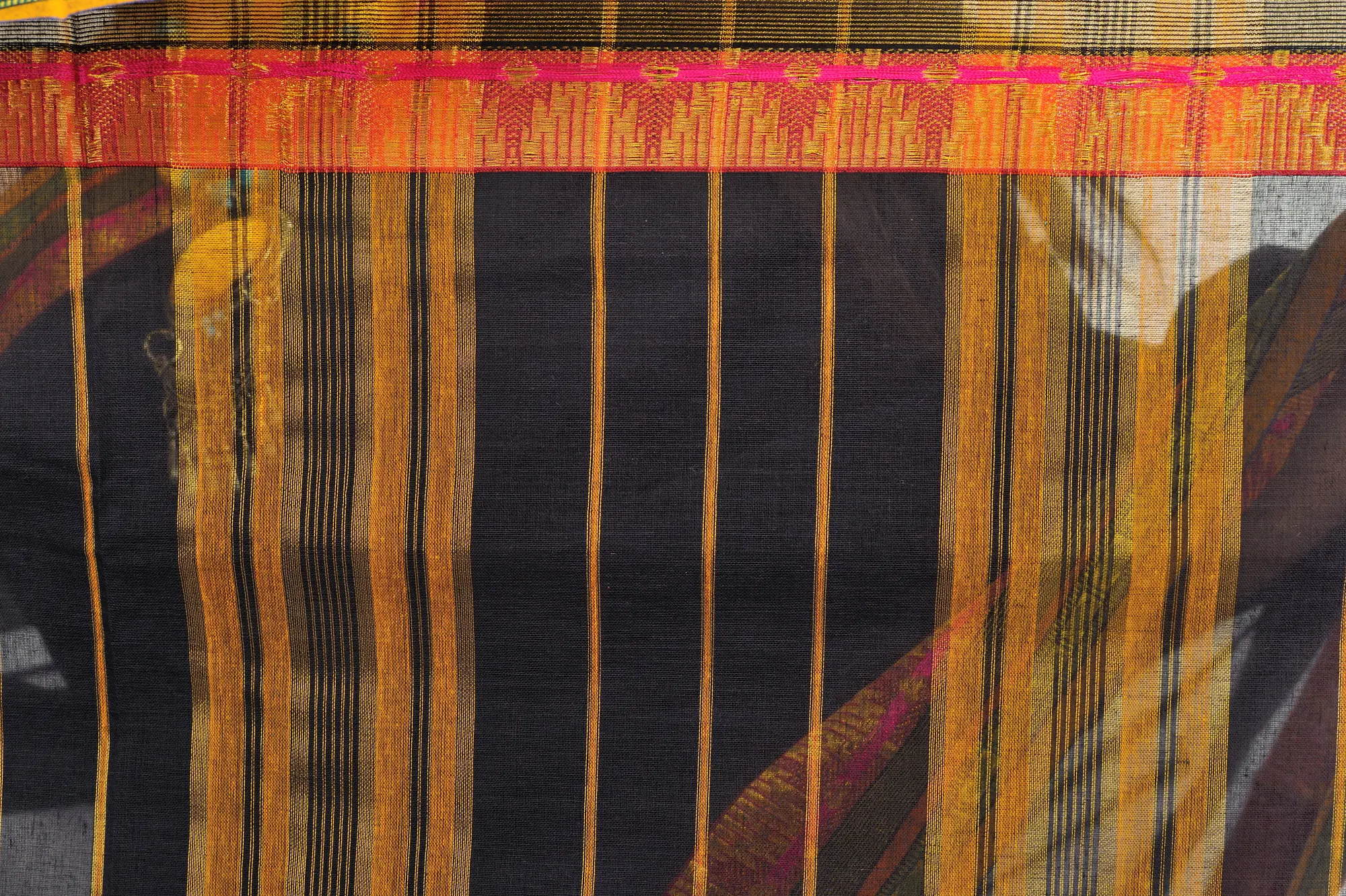 Dindigul Handloom Cotton Saree in Black with Intricate Thread Weave