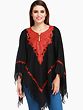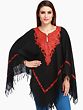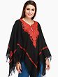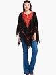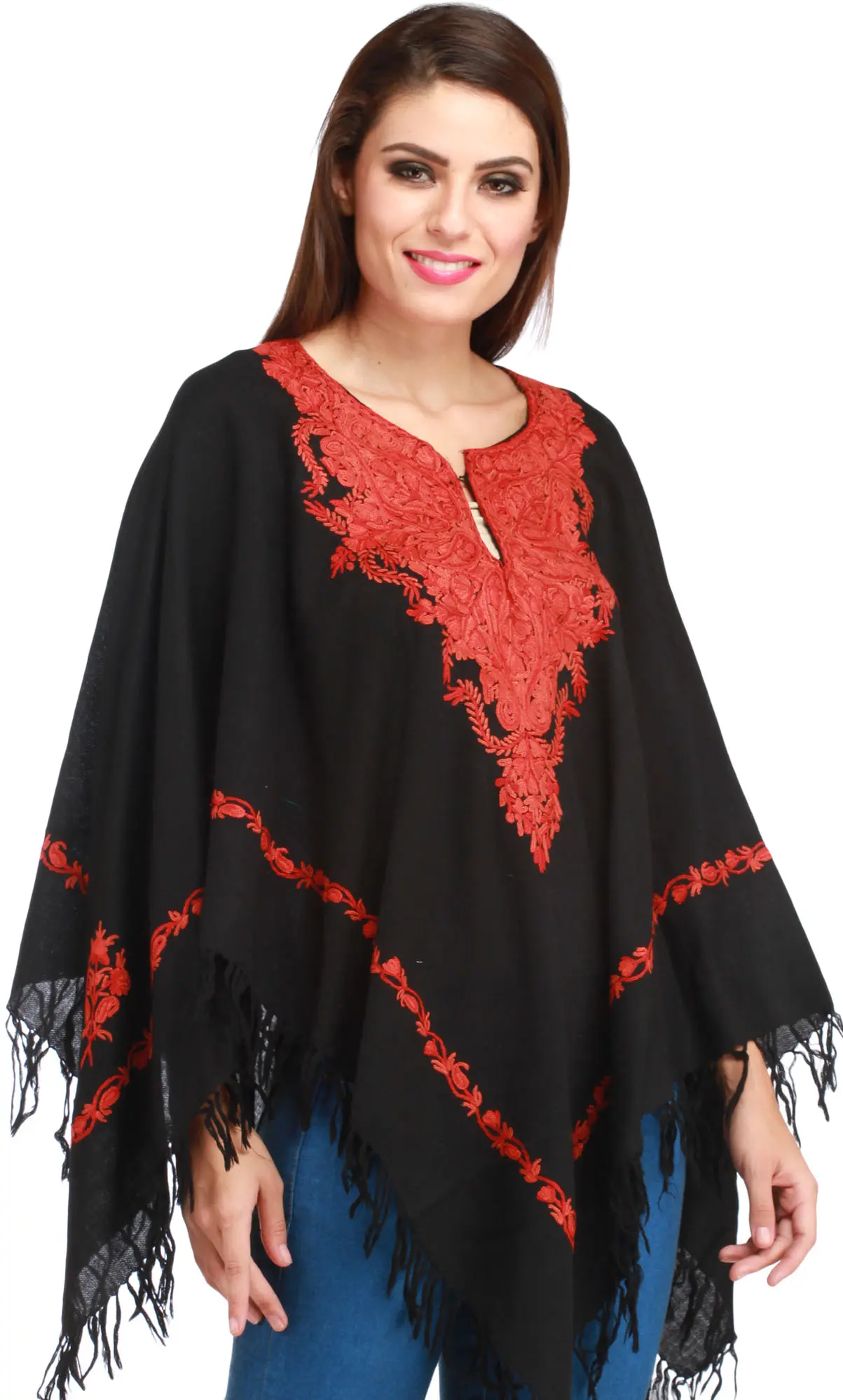 Black-Beauty Cape from Kashmir with Aari Hand-Embroidered Giant Paisley and Flowers