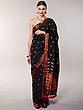 Caviar-Black Jamdani Saree from Bengal with Woven Bootis and Striped Border