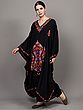 Black Short Batik Kaftan from Kashmir with Thread-Embroidery