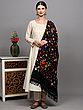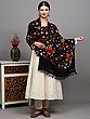 Jet Black Jamawar Stole from Amritsar with Aari Embroidered Flowers in Self-Colored Thread