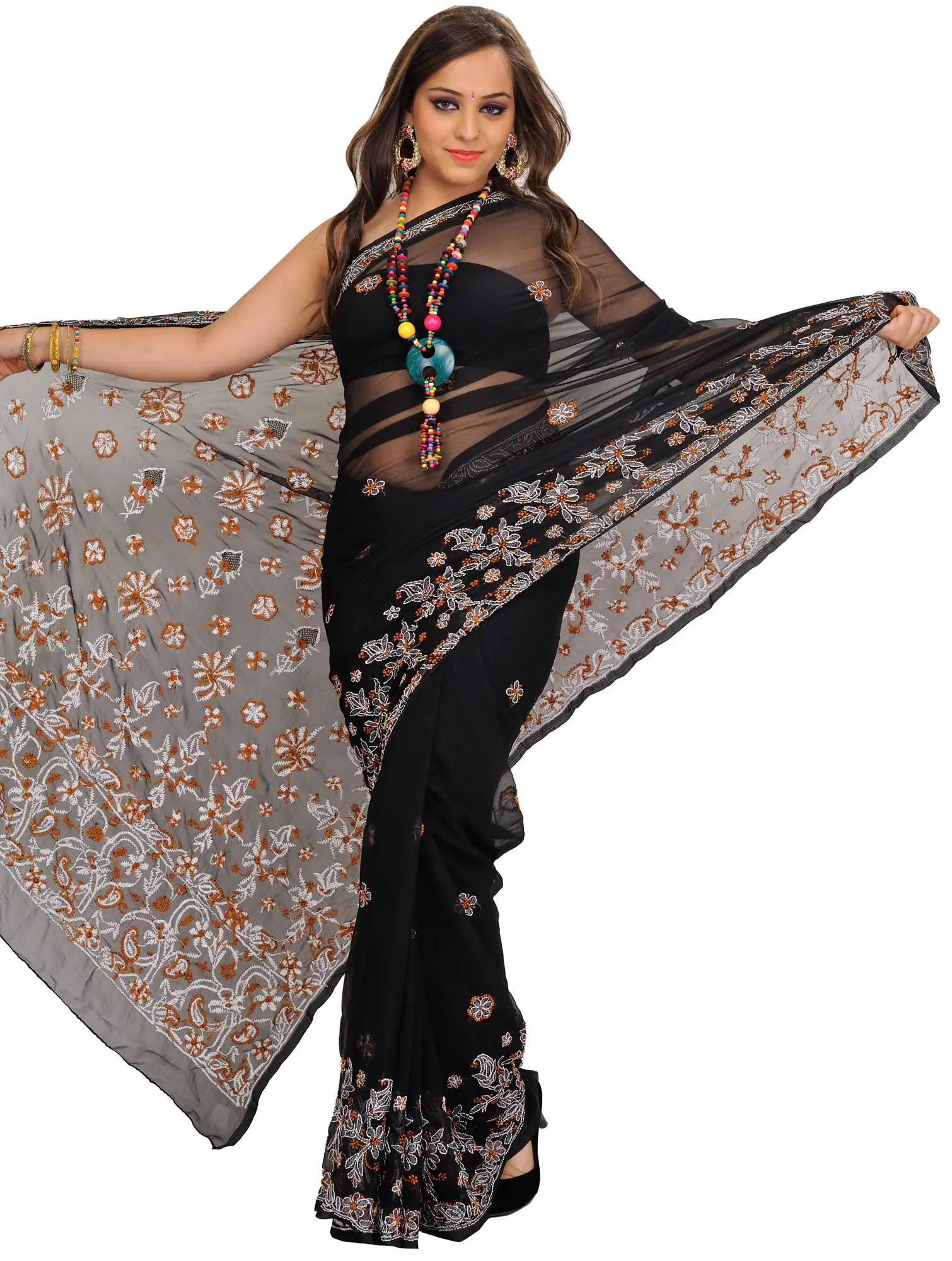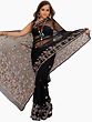 Tri-Coloured Hand-Painted Kalamkari Chiffon Sari from Telangana